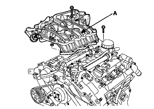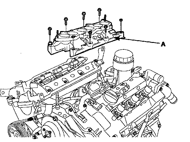 17. Remove intake manifold (A) and gasket.