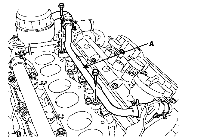 11. Remove surge tank bracket (A).