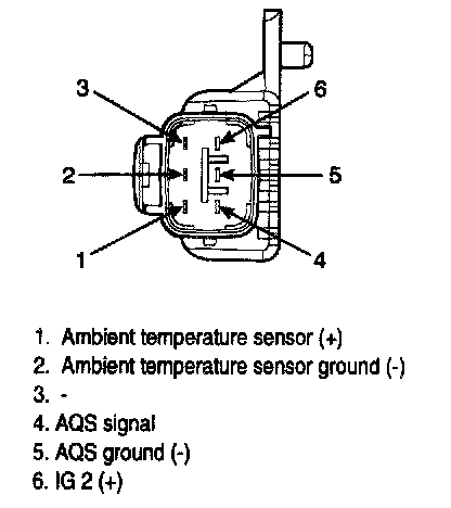 DESCRIPTION1. The ambient temperature sensor is located at the front of the condenser and detects ambient air temperature. It is a negative type thermistor; resistance will increase with lower temperature, and decrease with higher temperatures.