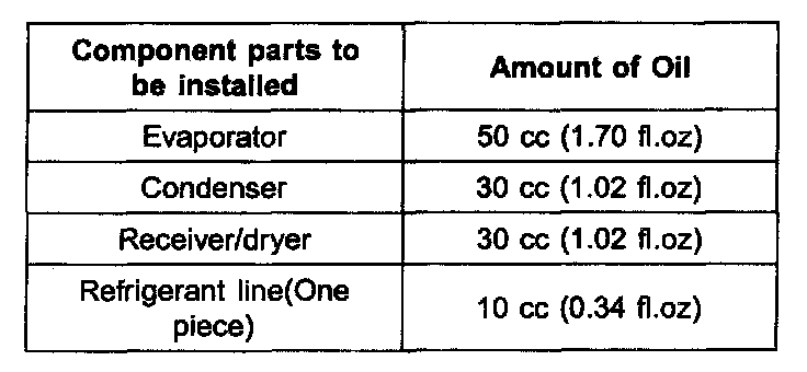 Oil total volume in system: PAG 150cc (5.07 fl.oz)