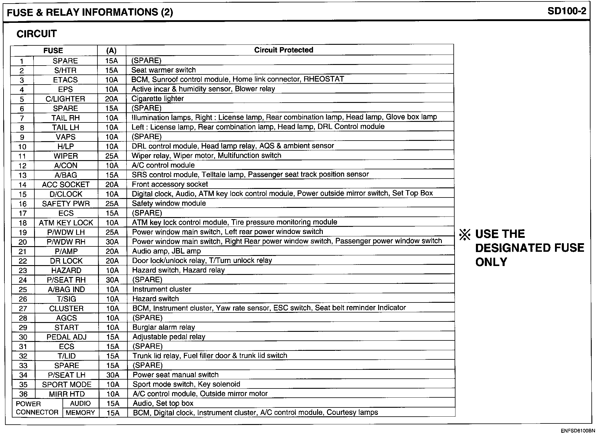 Passenger Compartment Junction Block Layout Circuit Details: