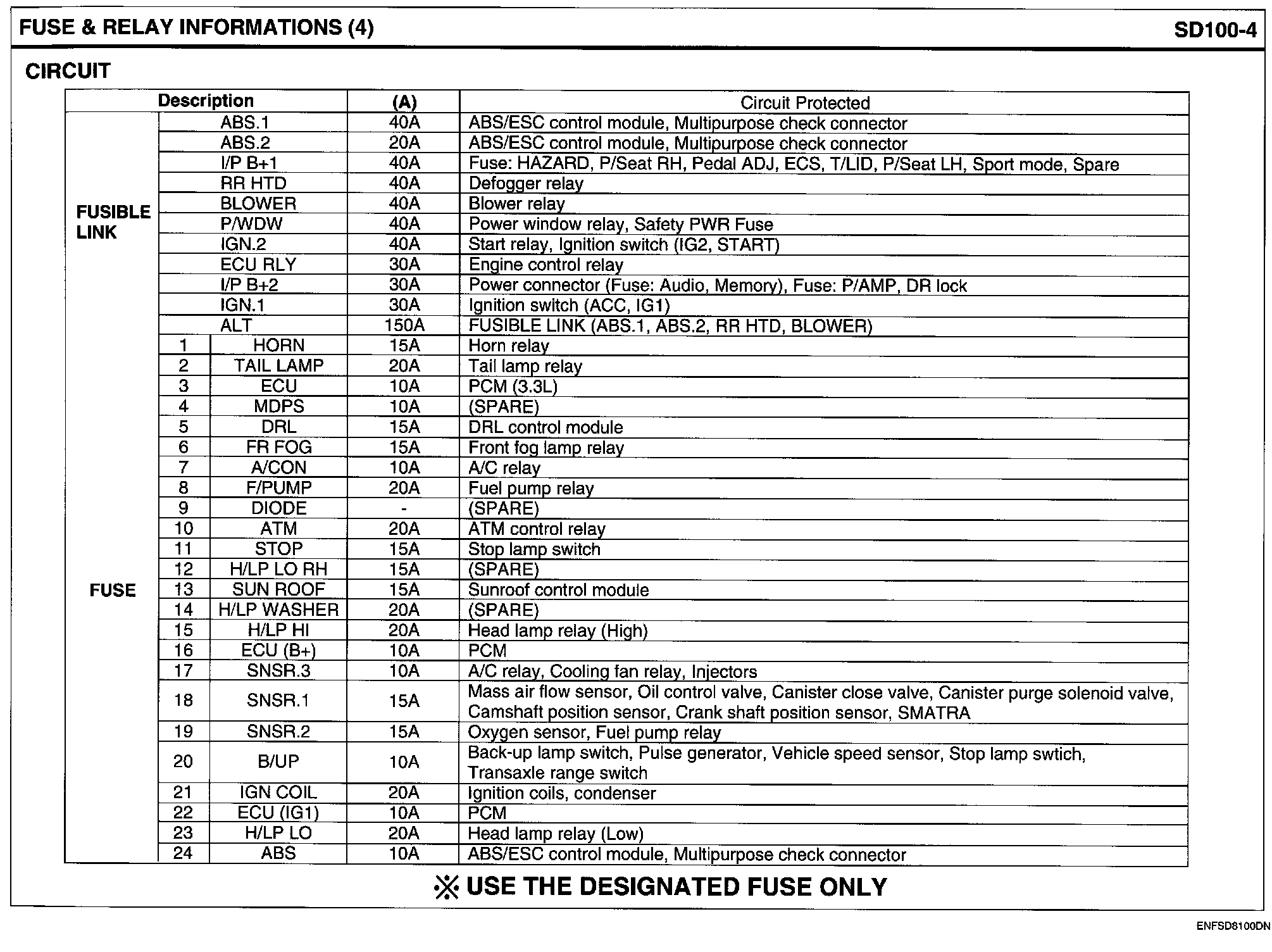 Engine Compartment Junction Block Layout Circuit Details: