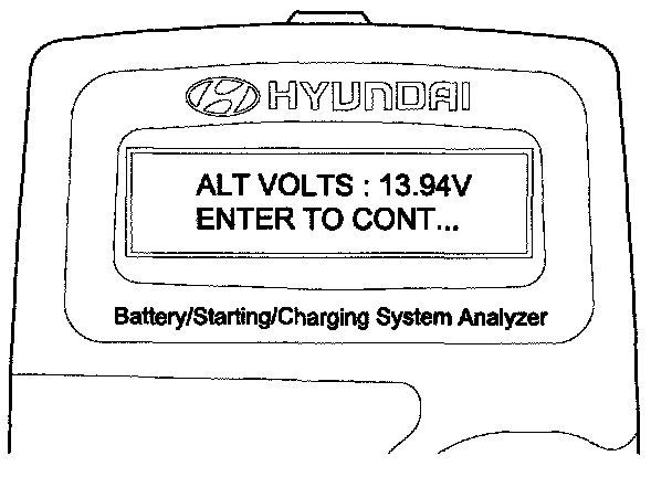 2. ENTER button is pressed, the tester displays the actual voltage of alternator.
