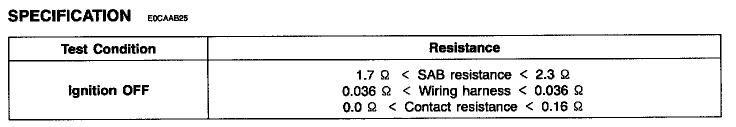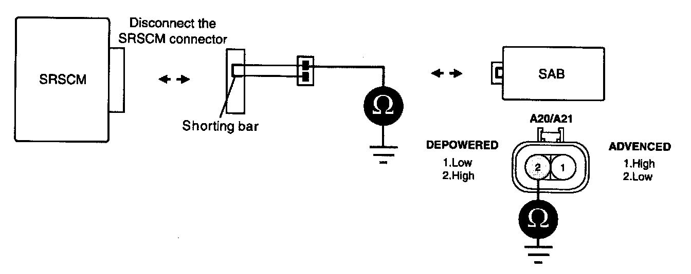 CAUTION: Never measure resistance of SAB directly, Current of measuring device may cause unexpected air bag deploy.