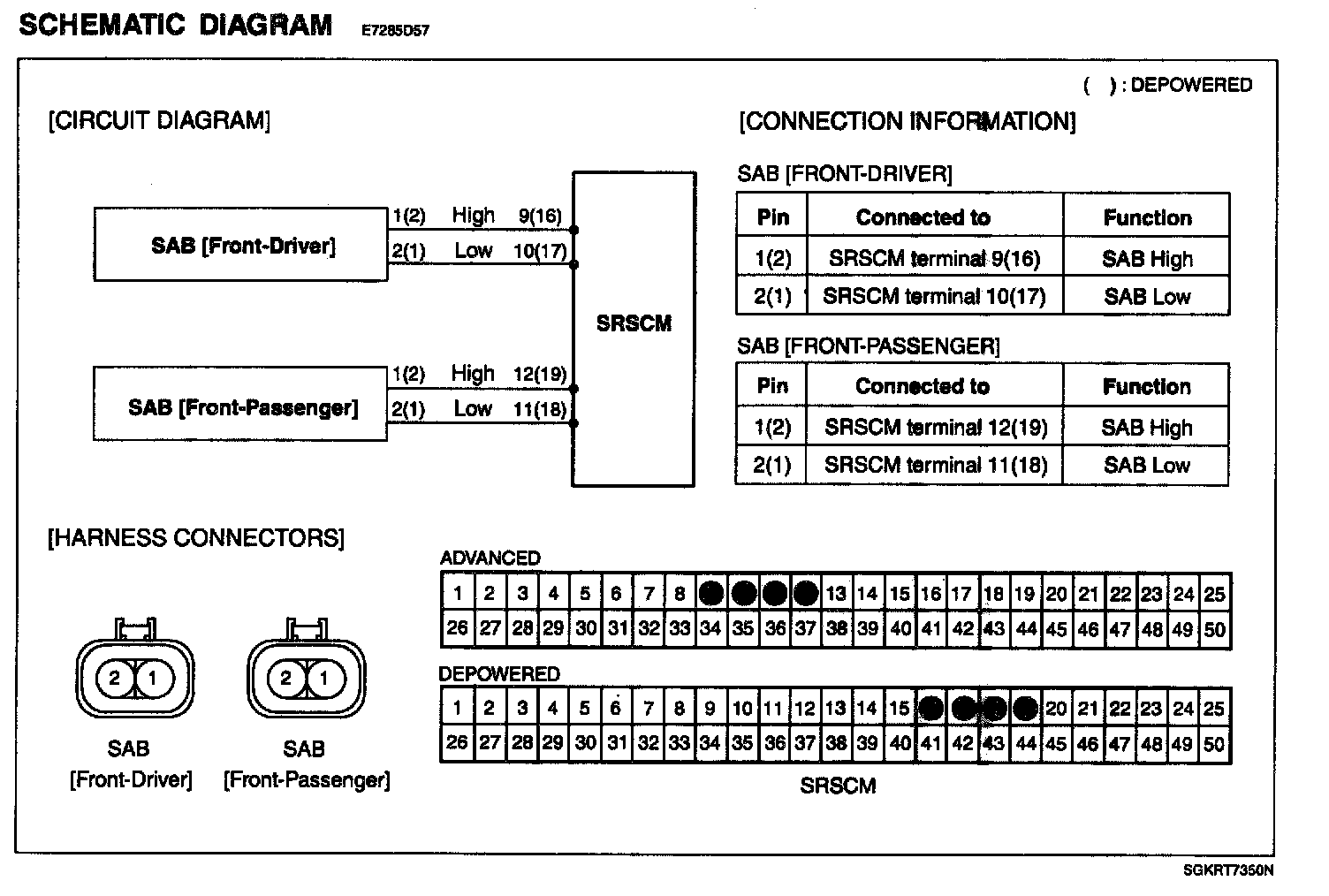 3. Disconnect SAB connector and SRSCM main harness connector.