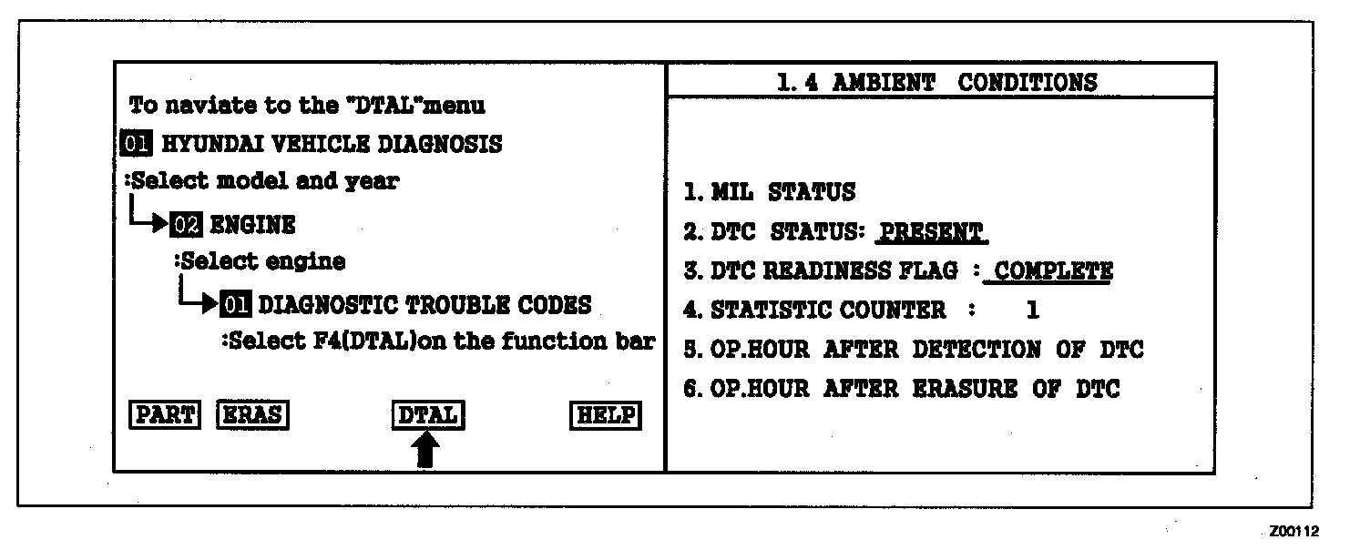 2. Press F4(DTAL) to select DTC information from the DTCs menu.