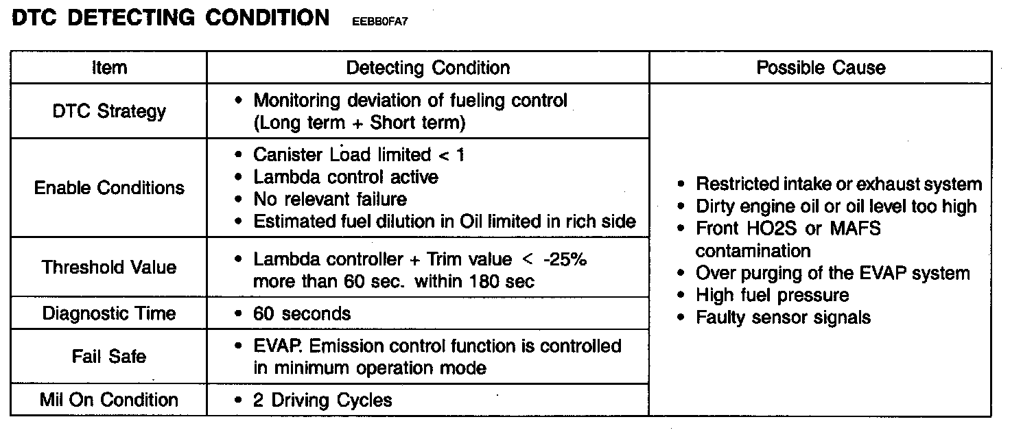 NOTE: If any codes relating to fuel system, injectors, HO2S, ECT(Engine Coolant Temperature)Sensor, Throttle Position sensor or Mass Air Flow Sensor are stored, do ALL REPAIRS associated with those codes before proceeding with this troubleshooting tree.