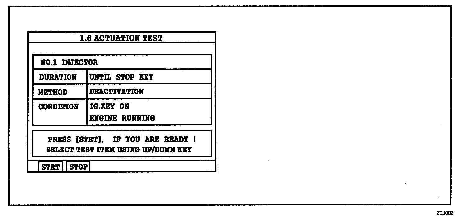 3. Monitor engine rpm and shut off the injector #1 by pressing "STRT(F1)" key.