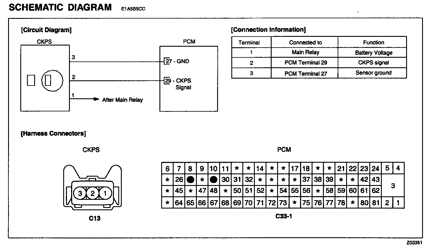 - Check for a open in the power supply circuit between the main relay and the CKPS.