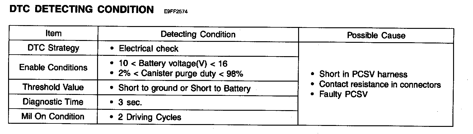 PCM sets DTC P0445 if the PCM detects that the PCSV control circuit is shorted to ground or shorted to battery voltage.