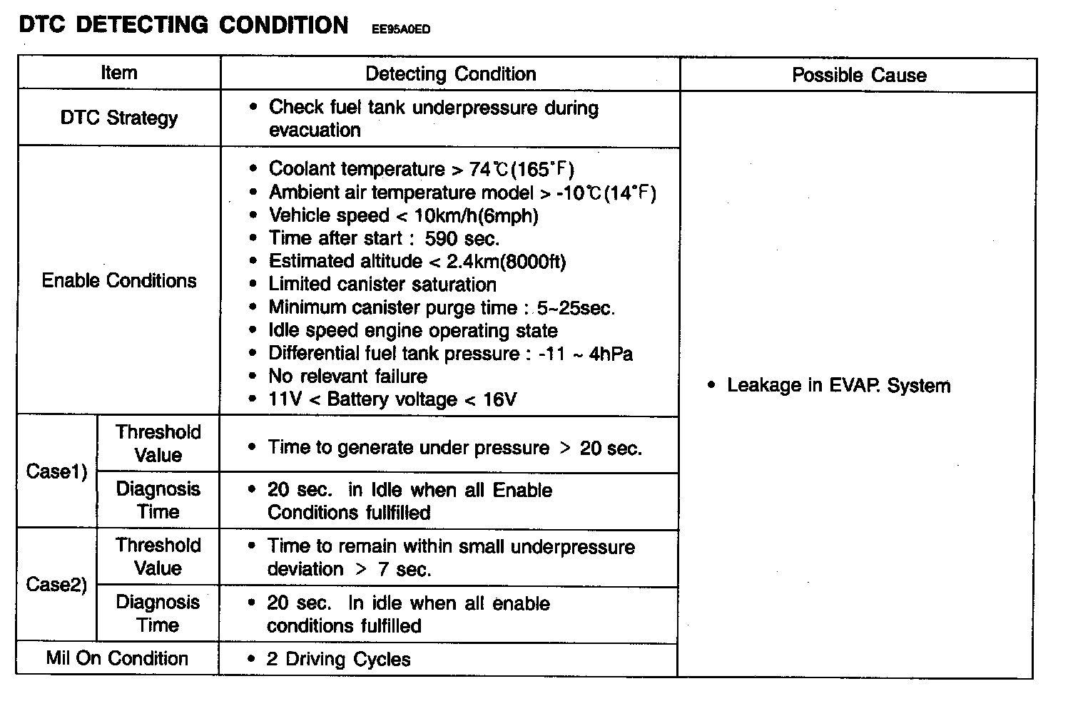 NOTE: EVAP Leakage Test enable conditions