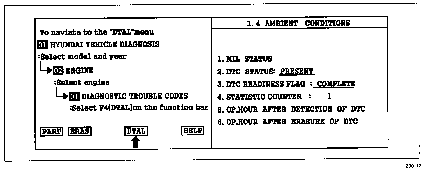 2. Press F4(DTAL) to select DTC information from the DTCs menu