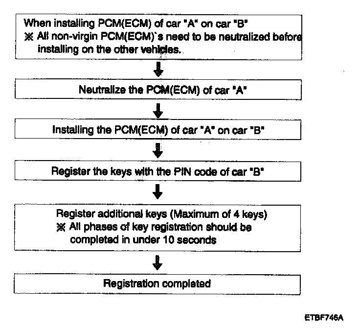 2. When the master key #1 is registered and master key #2 is not registered, Put the master key #1 in the IG/ON or the start position and remove it. The engine can be started with the unregistered master key #2.