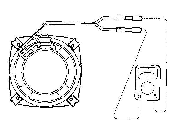 Check the speaker with an ohmmeter. If an ohmmeter indicates the correct impedance of the speaker when checking between the speaker (+) and speaker (-) of the same channel, the speaker is ok.