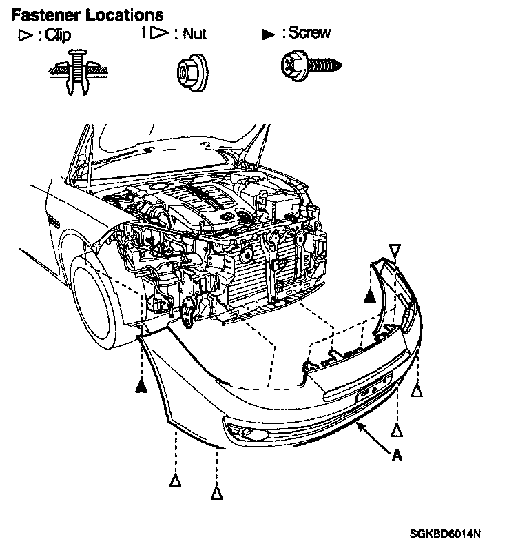 FRONT BUMPER COVER REPLACEMENT1. Remove the front bumper cover (A).