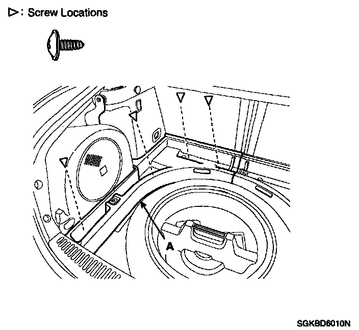 1. Loosen the trunk trim mounting screws and remove the trunk trim (A).