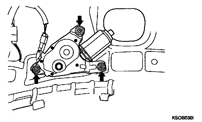 6. Remove the rear wiper motor mounting 3 bolts and disconnect the wire connector. Remove the rear wiper motor.