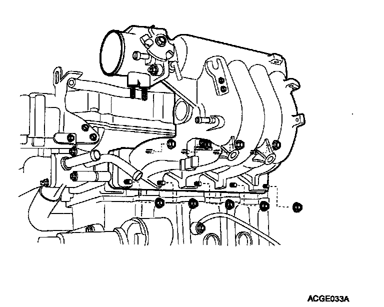 6. Remove the water hoses(A), PCSV(B), and brake vacuum hose(C).