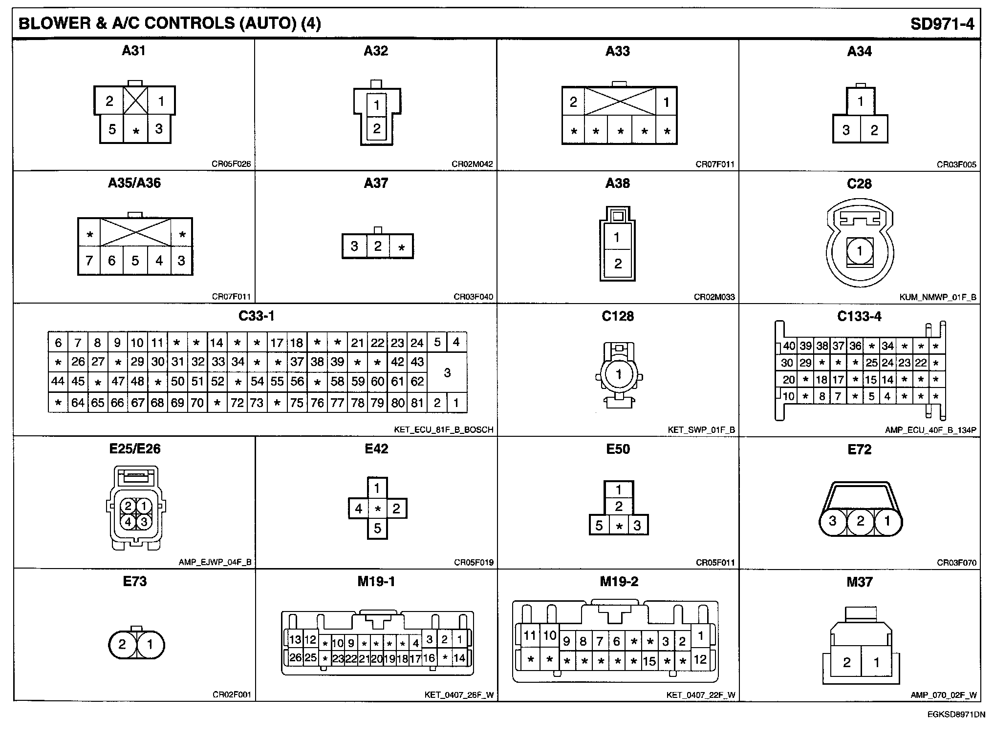 Blower & A/C Controls (Auto) Connector Pin Outs: