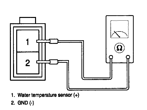 2. Using the multi-tester, Measure resistance between terminal "1" and "2" of water temperature sensor.