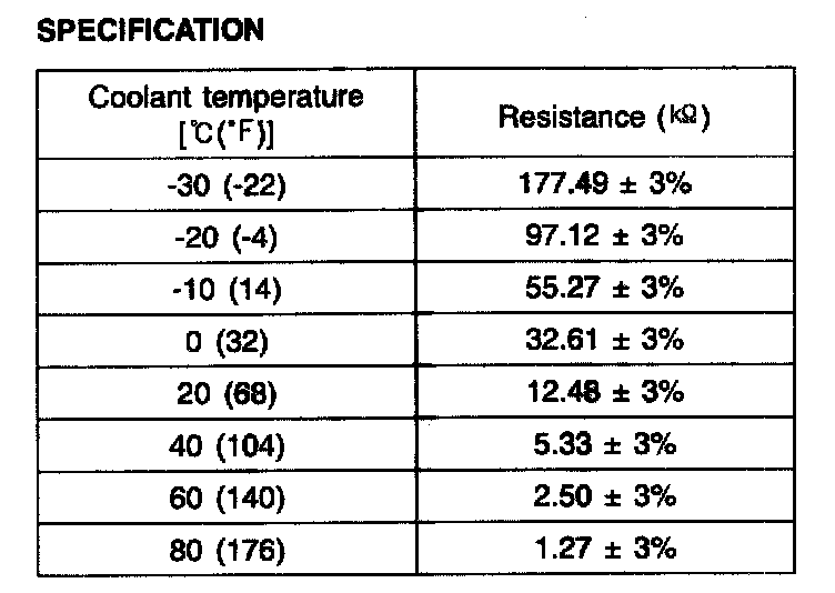 3. If the measured resistance is not specification, substitute with a known-good water temperature sensor and check for proper operation.