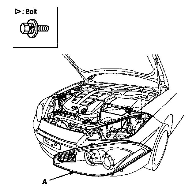3. Loosen the mounting bolts (3EA) of head lamp. Remove the head lamp assembly (A).