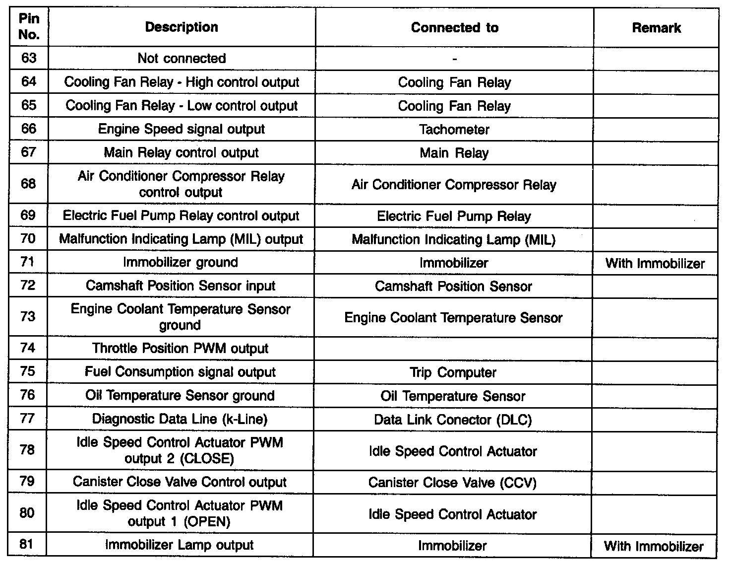 Engine Control Module ECM Terminal Function (Part 1):