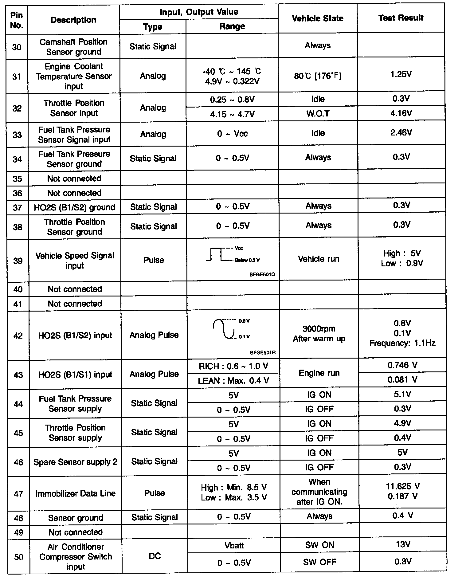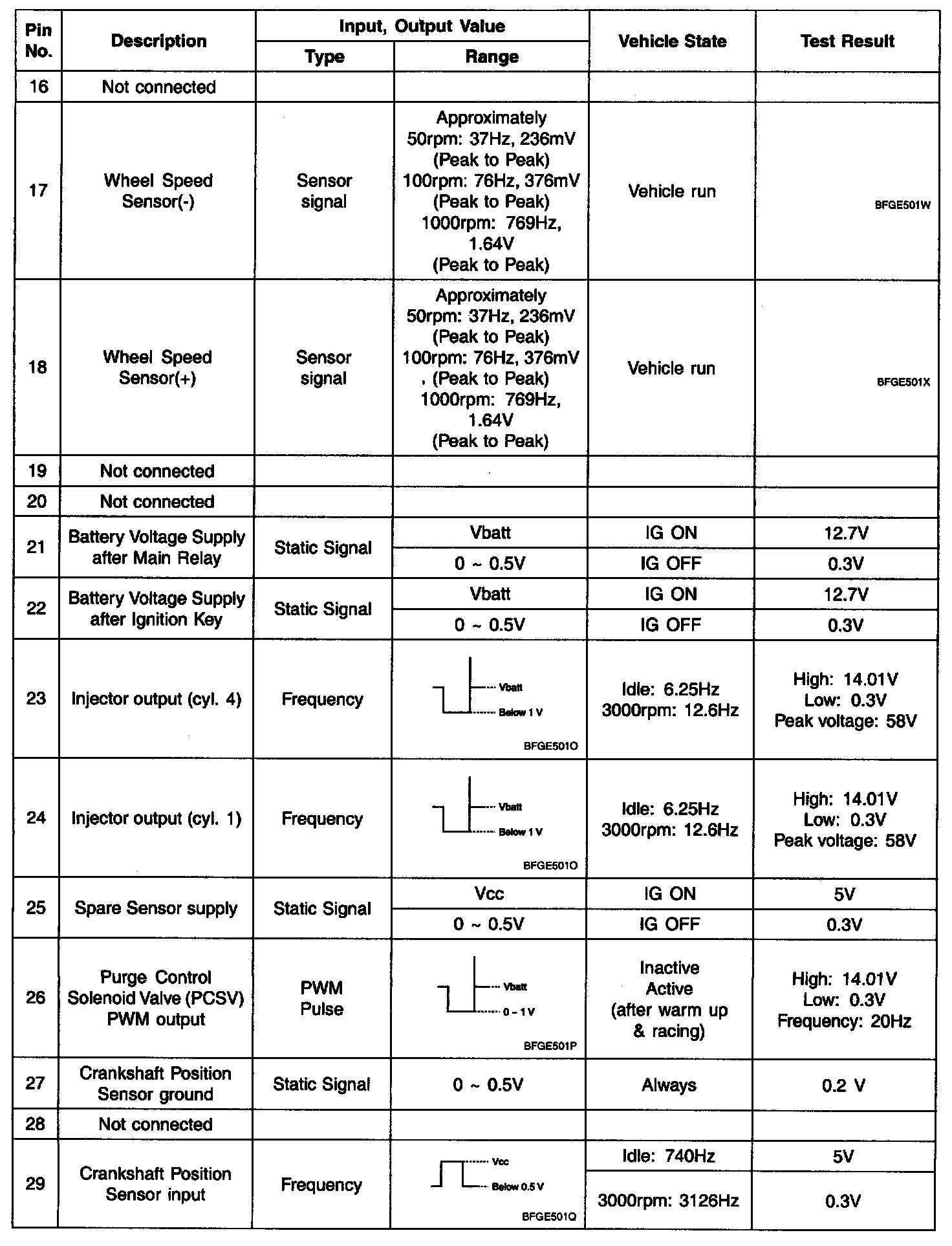 Pinout Values and Diagnostic Parameters