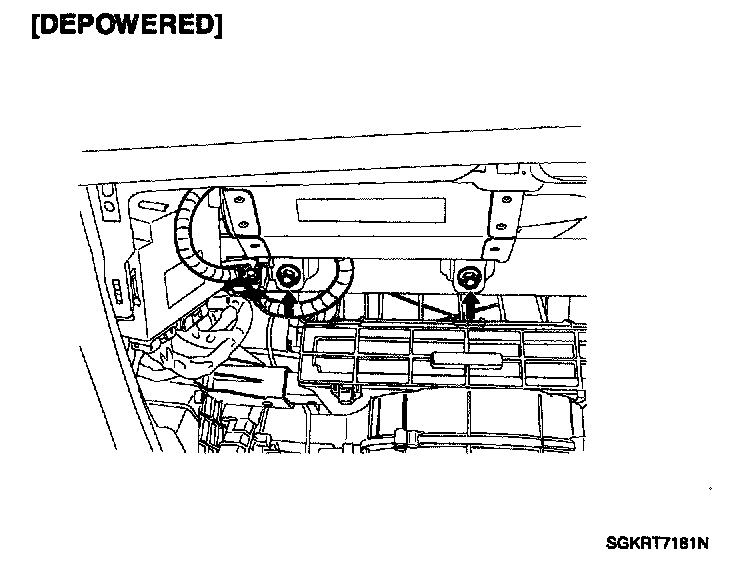 5. Remove the mounting nuts from the crash pad. Then remove the passenger airbag.