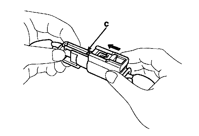 Hold both connector halves and press firmly until the projection (C) of the sleeve-side connector clicks to lock.