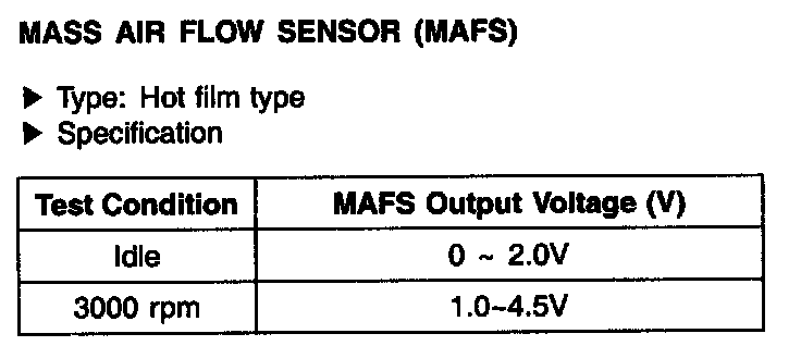 Mass Air Flow Sensor (MAFS) - Specifications: