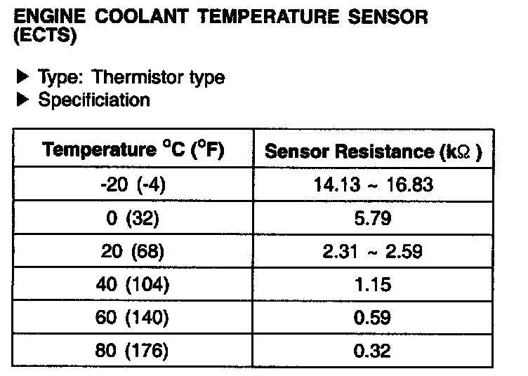 Engine Coolant Temperature Sensor (ECTS) - Specification: