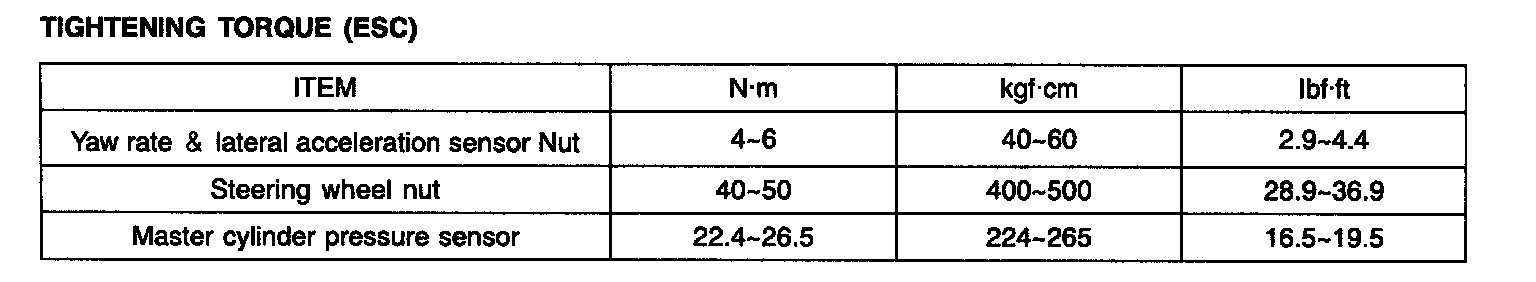 TIGHTENING TORQUE (ESC):
