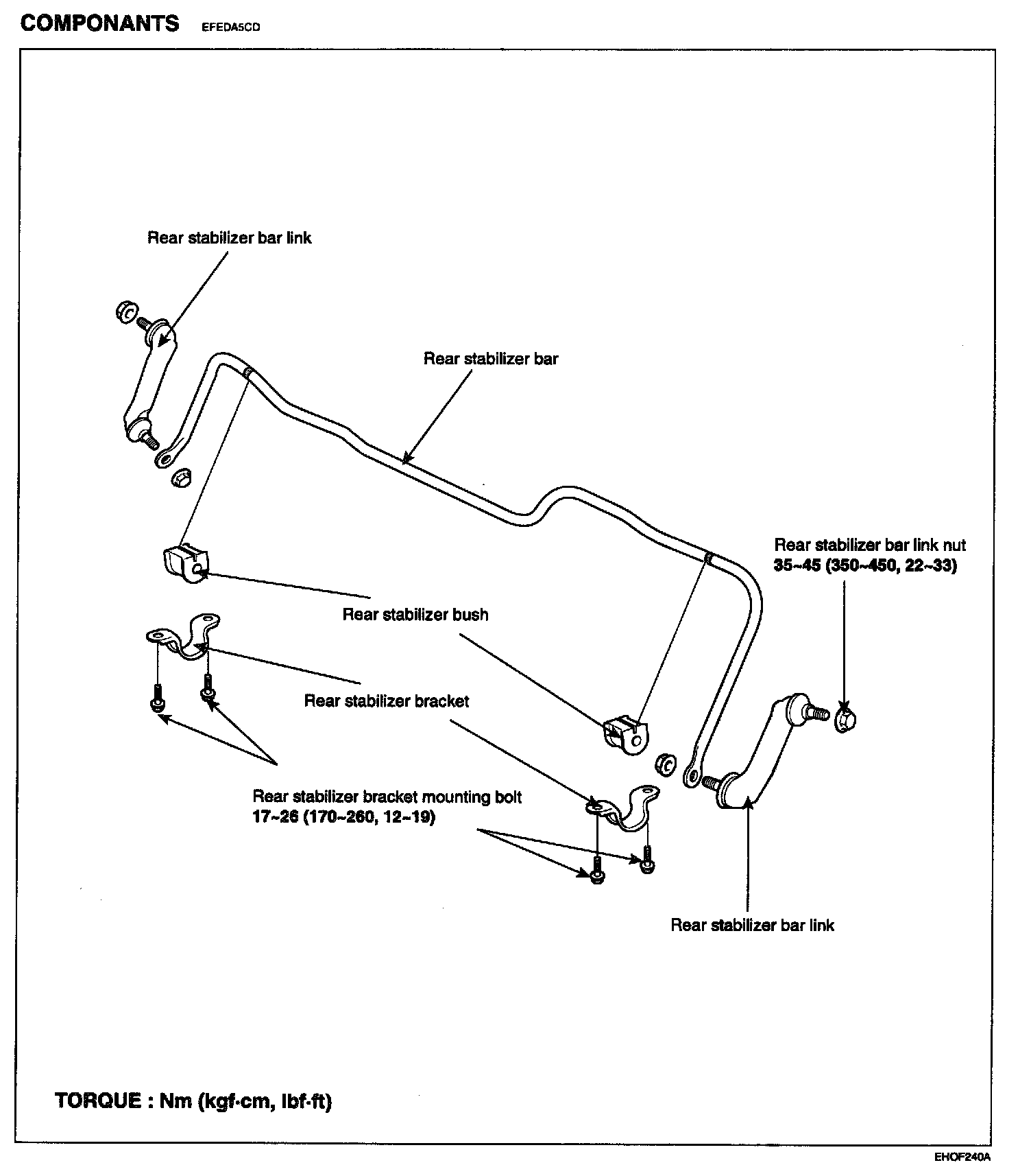 Rear stabilizer bar link mounting: 35-45 Nm (350-450 kgf-cm, 26-33 lb-ft)