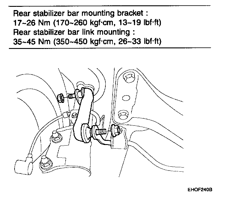 Rear stabilizer bar mounting bracket 17-26 Nm (170-260 kgf-cm, 13-19 lb-ft)