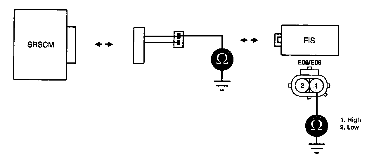 4. Measure resistance between terminal "1" or "2" of the FIS harness connector and chassis ground.