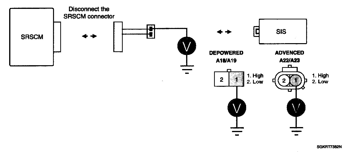 5. Measure voltage between terminal "1" or "2" of the SIS harness connector and chassis ground.