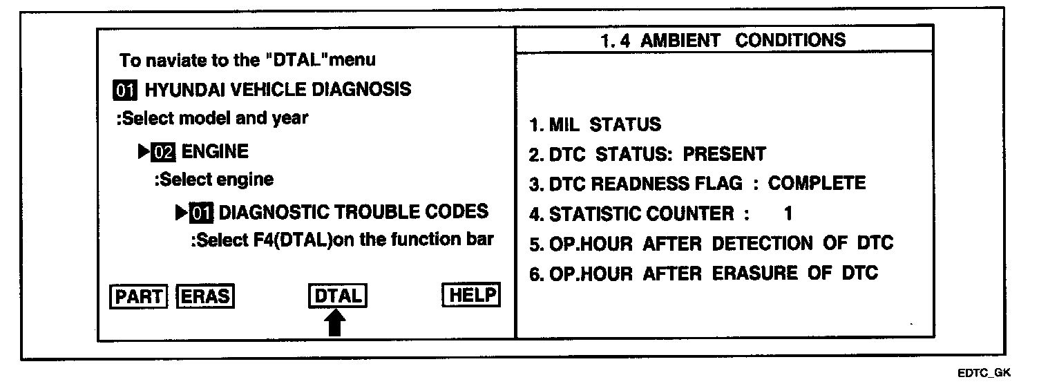 2. Press F4(DTAL) to select DTC information from the DTCs menu.