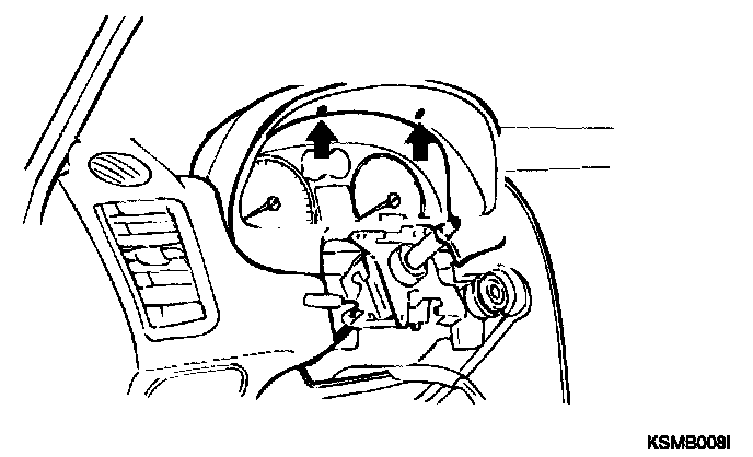 9. Disconnect the hood release cable and connectors from the cover. After removing the 2 screws, remove the crash pad under cover of the passenger compartment.