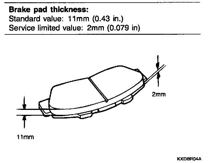 ^ The pads for the right and left wheels should be replaced at the same time. Never "drop" or intermix brake pad sets.