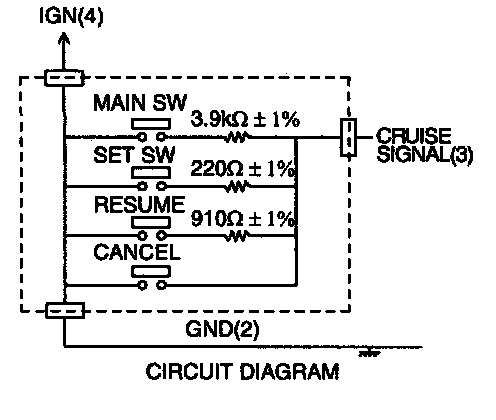 4. Check the continuity between the terminals of the connector in each switch position according to the table.