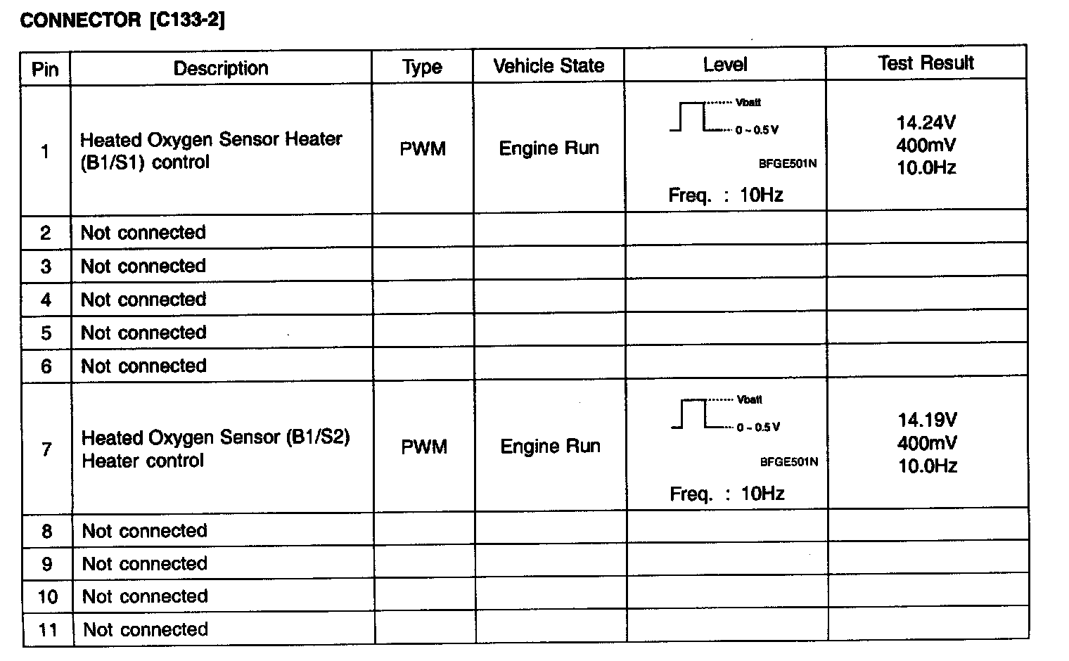 ECM Terminal Input/Output Signal - Connector [C133-1]: