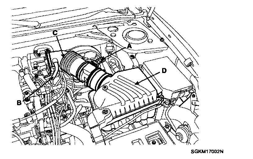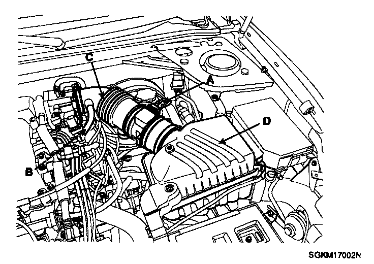3) Remove the intake hose (C) and air cleaner upper cover (D).
