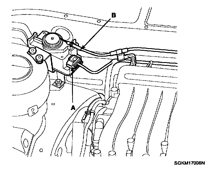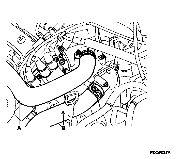 24. Remove the upper radiator hose(A) and lower radiator hose(B).