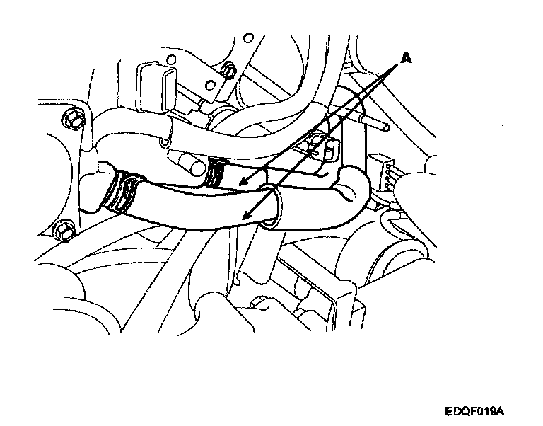 6. Remove the upper radiator hose(A) and lower radiator hose(B).