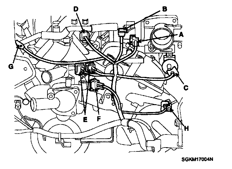 8. Remove the engine wire harness connectors and wire harness clamps from the cylinder head and the intake manifold.