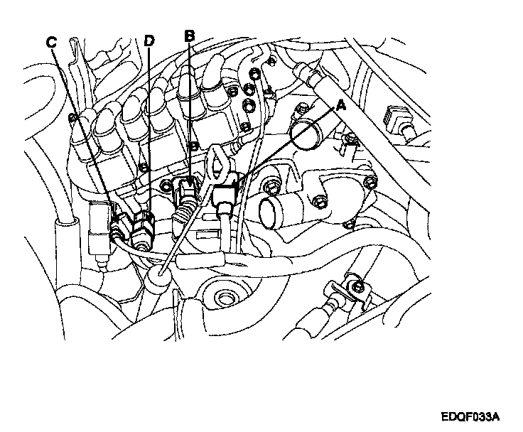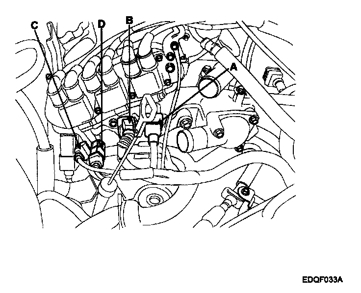 2) Heated oxygen sensor (Bank l, Sensor 2) connector (D).