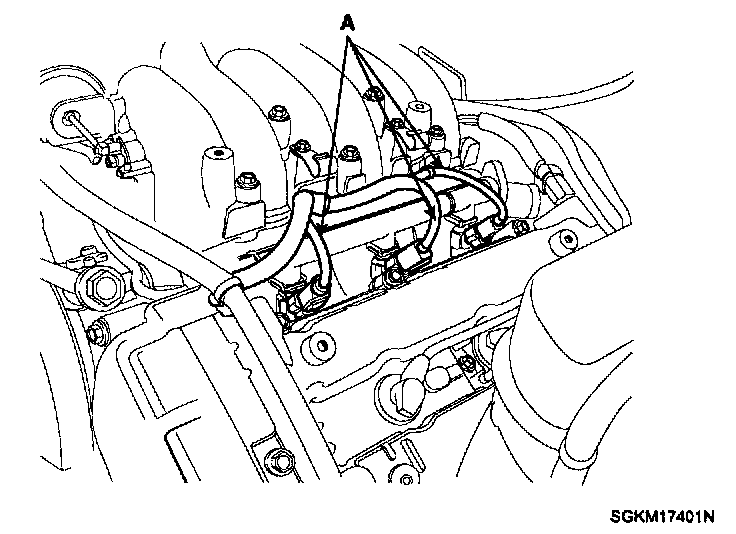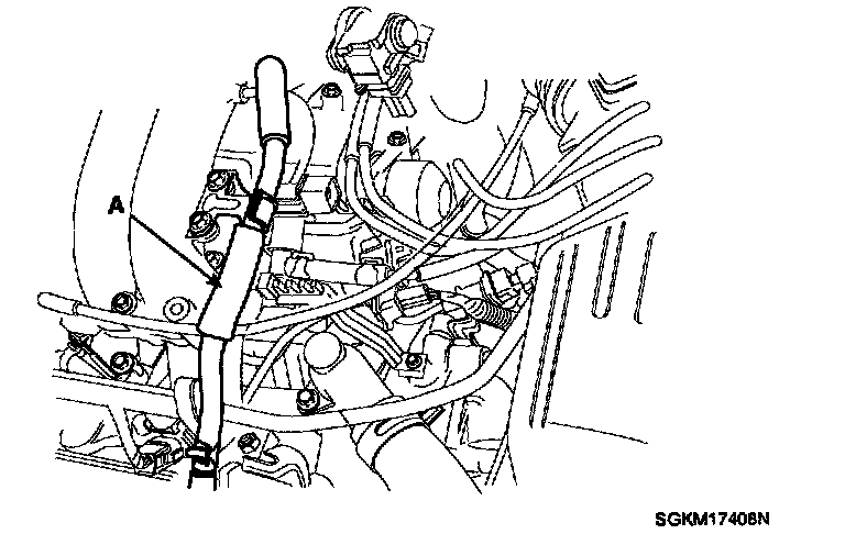 20. Disconnect the purge control solenoid valve (PCSV) hose (A).