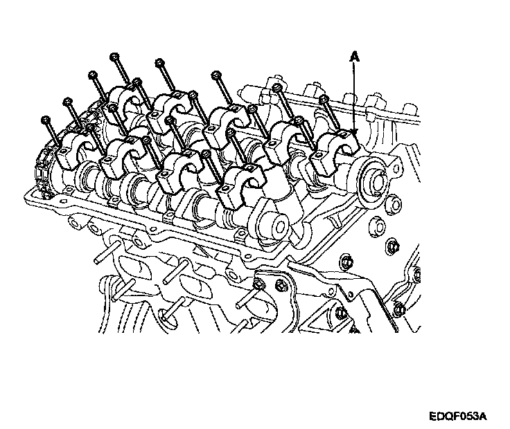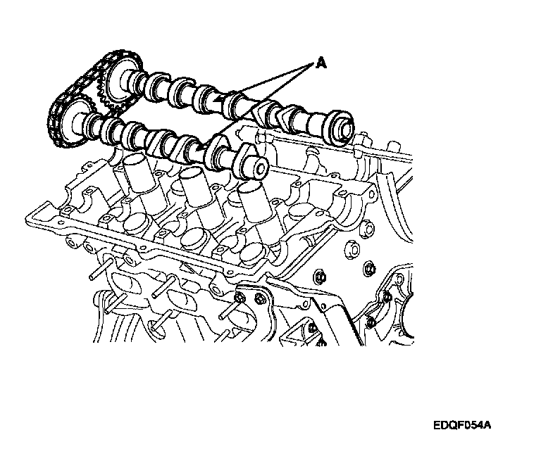 ^ Apply new engine oil to the thrust portion and journal of the camshafts.
