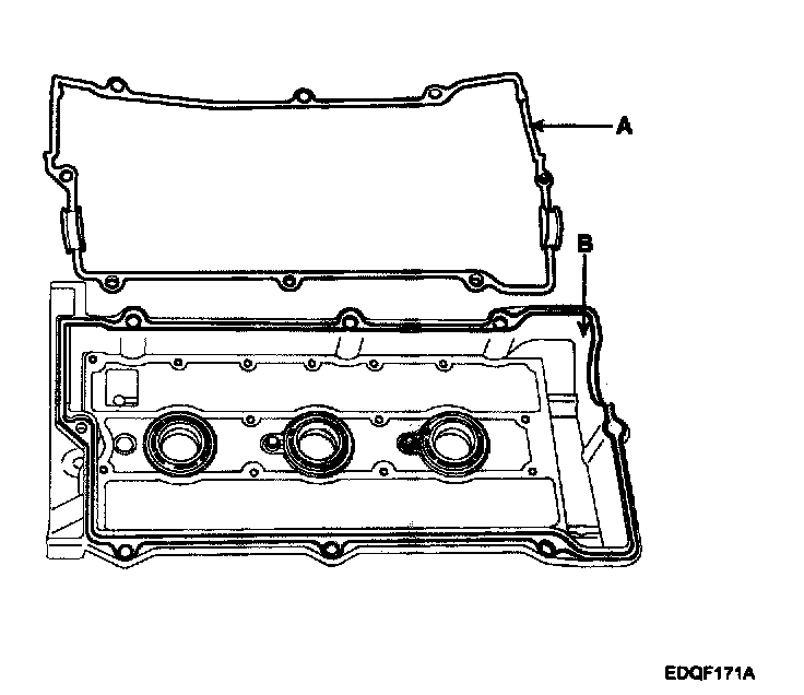 1) Install the cylinder head cover gasket(A) in the groove of the cylinder head cover(B).